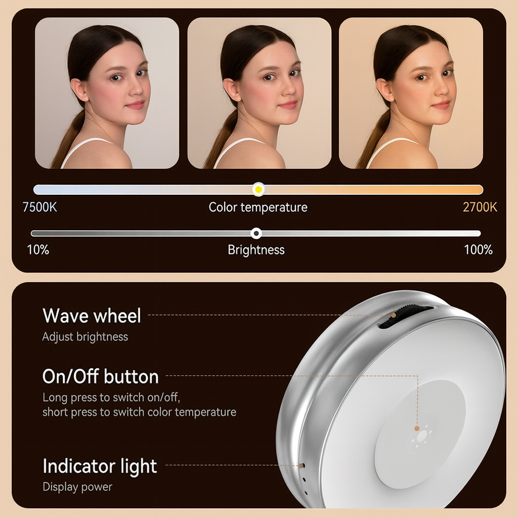 Turn every moment into professional-grade content. With TAILEDEN’s magnetic selfie light, enjoy instant brightness, adjustable angles, and a compact foldable design that goes wherever you go. Perfect for selfies, live streams, video calls, or creating social media magic.